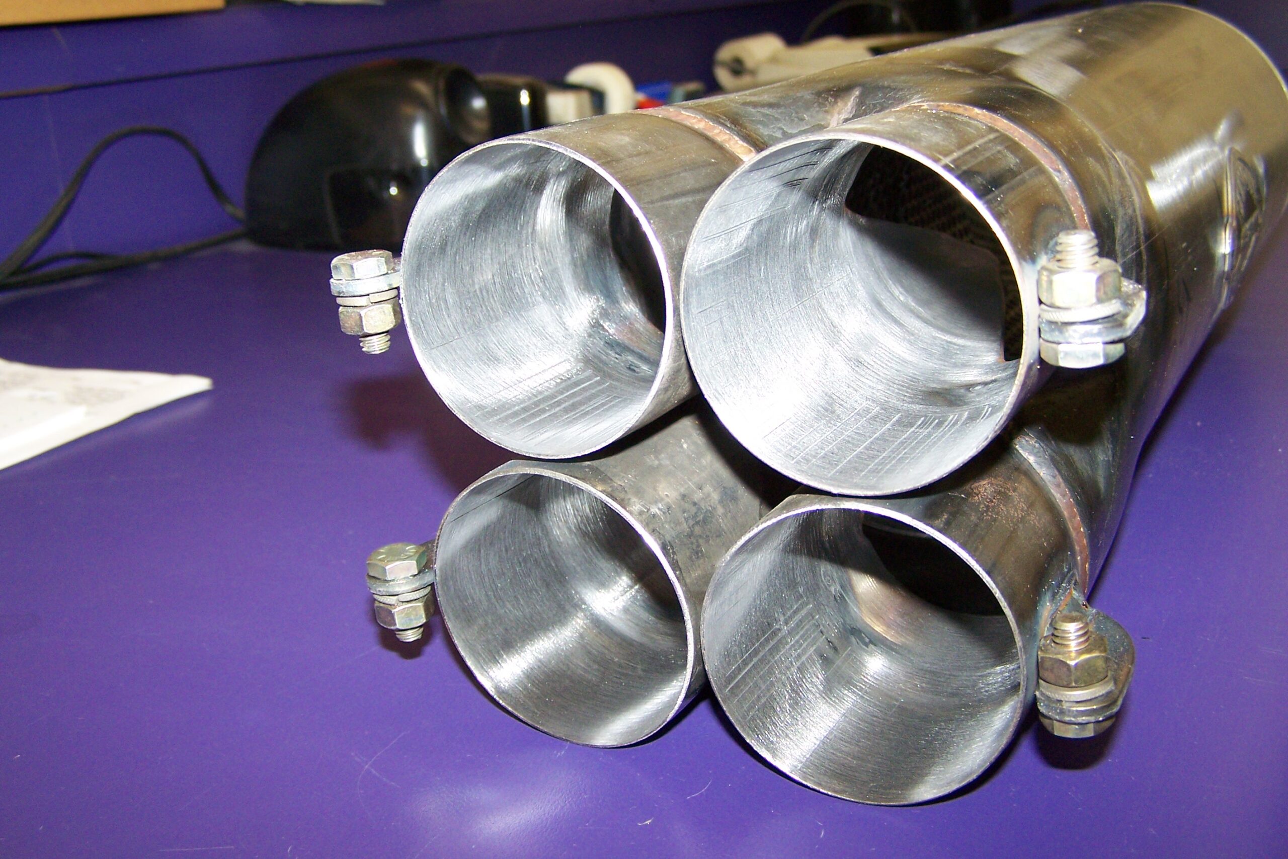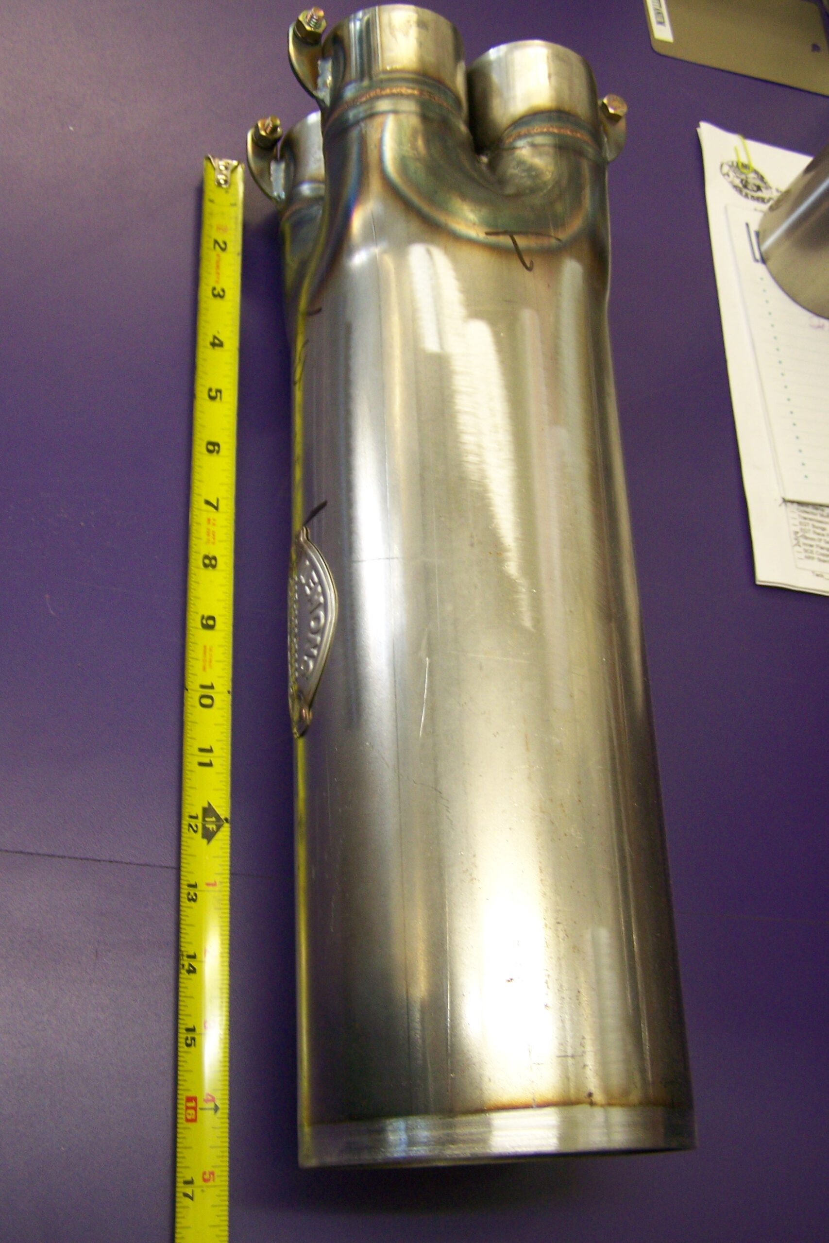 If your current collector size is 4” by 12” long, we would make the collector muffler case size 5” by 15” long to maintain the same exhaust flow.