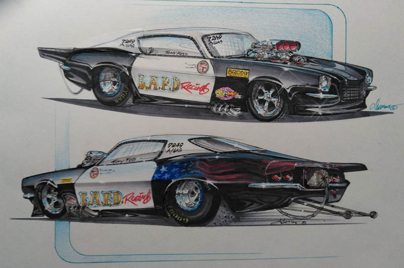 On the other side of this enduring partnership stands Tony Foti, a drag racer and a retired LAPD detective who would swap out his badge and gun for a fire suit and helmet on the weekends. He’s known for his audacious drive – both on and off the track. Back in 1984, Foti created the LAPD Racing Team, where he showcased his extraordinary driving skills in a AA/ Pro Modified 1991 Camaro, a drag race beast that could hit speeds of over 200 m.p.h. Adorned in LAPD’s black and white livery and a police light bar, this was no ordinary race car; it was a 1,300-horsepower symbol of unity and outreach, a tool to bridge gaps between the police force and the youth of Los Angeles.