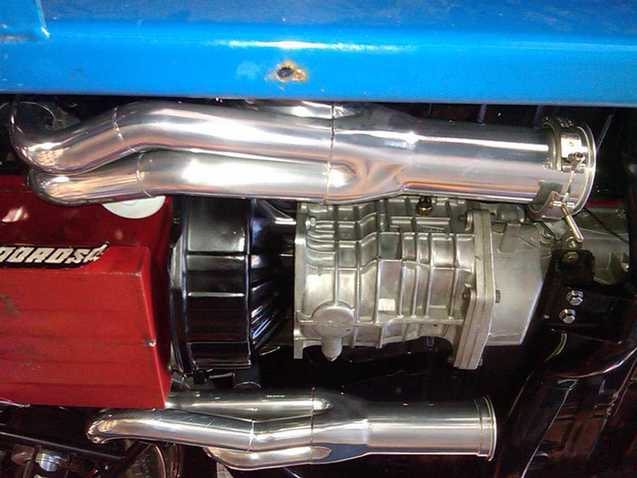 Driver side is the same for both headers. To install, remove the clutch linkage, oil filter and the bolt that holds the motor mount to the frame stand. You may have to raise the engine about 1”. Install the header from the bottom. When you let the engine back down be sure that engine has centered itself on the frame stands.