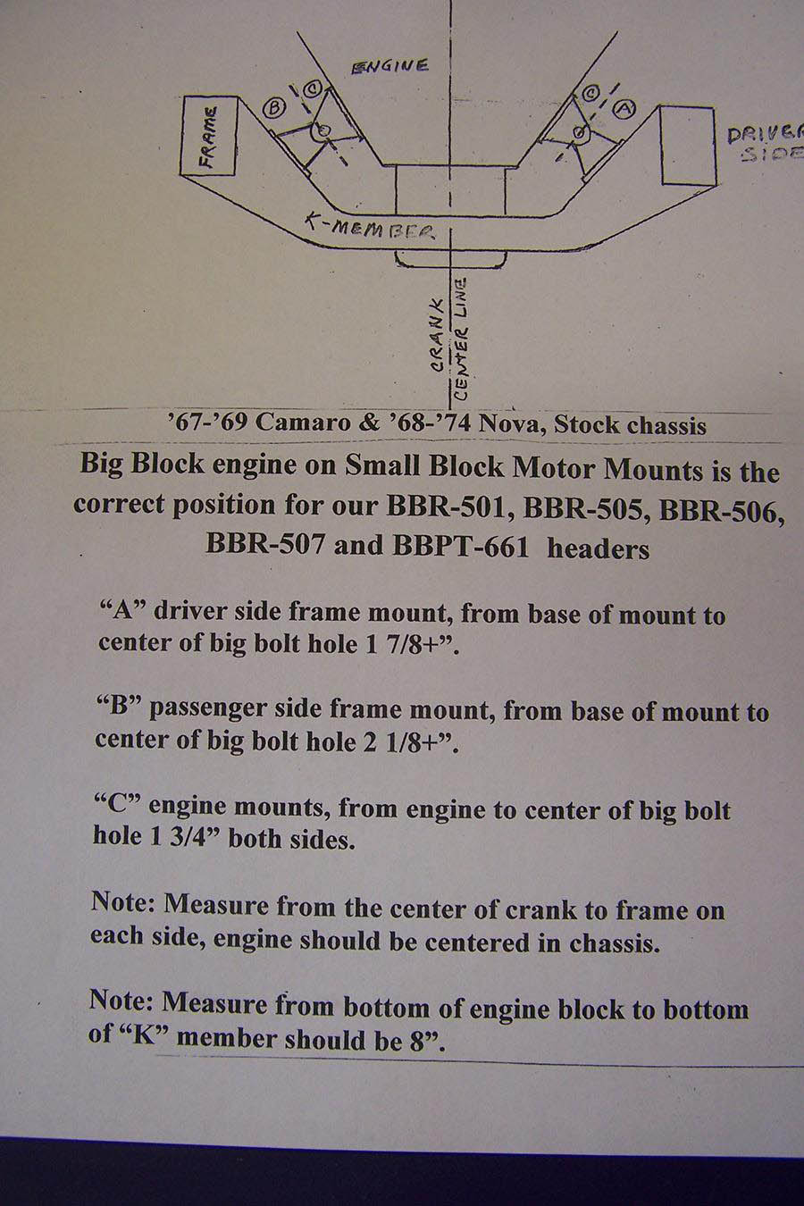 #BBR-505 – ‘67-’69 CAMARO BIG BLOCK – ‘68-’74 NOVA BIG BLOCK – BB RACE HEADER FOR STOCK CHASSIS WITH STOCK STEERING BOX