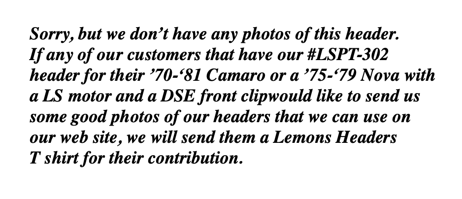 #LSPT-302 – ‘70-’81 CAMARO LS-1 TO LS-7 – ‘75-’79 NOVA LS-1 TO LS-7 – LS Pro Tour header for Detroit Speed & Engineering chassis