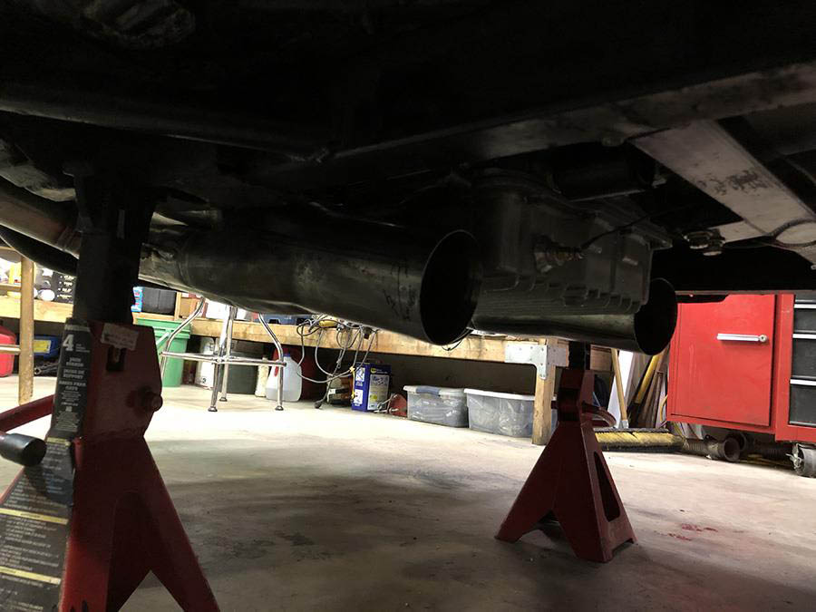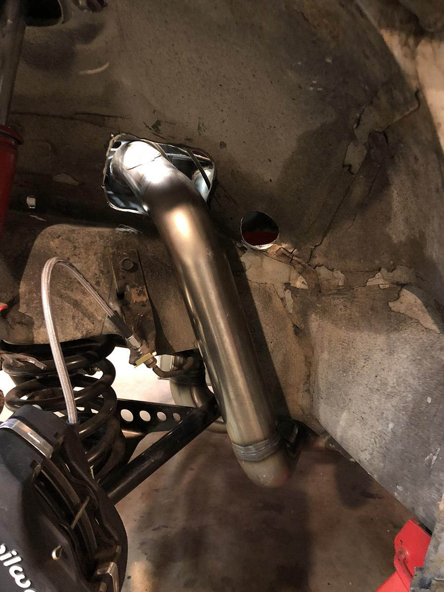 The most restrictive part of this chassis is the floor board area around the transmission which does not leave enough room for our collector mufflers (We have been told by customers that flipping the floorboard will give you more room.). This design has 2 tubes on the passenger side and 1 tube on the driver side that go around the frame, this enabled us to keep room for the starter and kick out oil pans with these large tube sizes. This header was designed using a Hitachi style starter a full size GM starter will not fit.