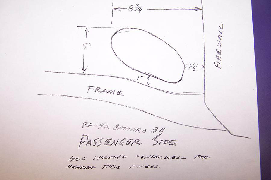We have included a drawing that shows where to cut your inner fender panels for clearance for the tubes that go around the frame.