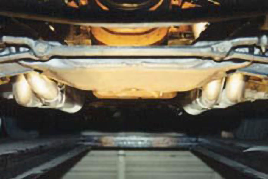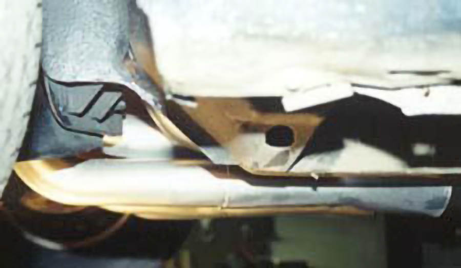 This header is designed for any tube size up to 2 ¼” with any collector size up to 4”. The tightest area on this chassis is the floor board area around the transmission which does not allow enough room for our collector mufflers. All of the tubes are inside the frame with good ground clearance and spark plug access. The lowest part of the header is the collectors because of the floor board. The header is designed for oil pans with kick out sumps. Measuring from a stock oil pan we have 3” of room at the pan rail and 4 ¼” at the bottom of the pan on the driver side. On the passenger side we have 2 ¼” at the pan rail and 2 ½” at the bottom of the pan. With no kick out on the oil pan the starter and oil filter are accessible. This design is made to fit side motor mounts or motor plates, but the engine must stay in the stock location. This header will fit a power brake booster, but will not fit a factory clutch slave cylinder or air conditioning or column shifter linkage.