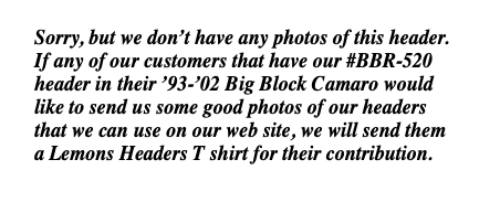 #BBR-520 – ‘93-’02 CAMARO BIG BLOCK – BB Race header for stock frame with stock “K” member with motor plates, also AJE aftermarket “K” member with motor plates, also BMR aftermarket “K” member with side motor mounts or motor plates