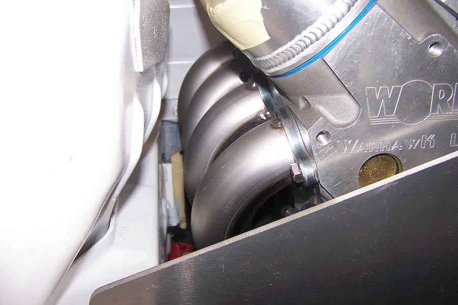 This header would come with oxygen sensor bungs welded in the collectors facing outward, but if you request a “V” band connection for your exhaust reducers we would install the oxygen bungs in the reducers witch can be rotated to any position. This header will fit a power brake booster, but will not fit factory air conditioning or any type of column shifter linkage or mechanical clutch linkage.