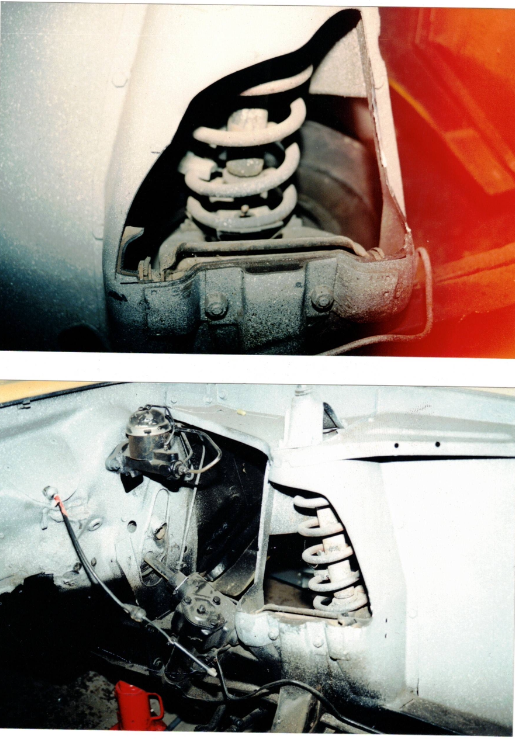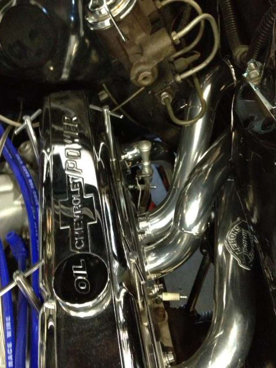 The shock towers and fender wells will need to be cut for header clearance (refer to pictures) Spark plug access is excellent. It has good front tire room but is intended for drag type skinny tires. The top of the collector is about 5/8” from the floor board for maximum ground clearance.
