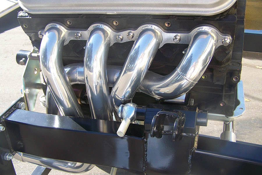 The header was designed for side motor mounts or motor plates and Alston’s sway bar kit. The engine needs to stay in the stock location with the steering column installed per the chassis builder’s specifications.