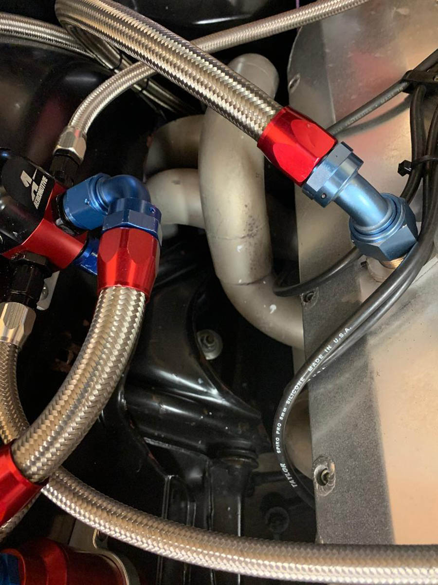 This header is designed for any tube size up to 2 ½” with any collector size up to 5” or our collector muffler up to a 6” size. It has 2 tubes on each side that go around the frame which will require that you trim your inner fender wells for clearance. We designed this header with the engine in the stock location setting on small block frame stands for the front motor mounts with Moroso #62530 solid motor mounts or Prothane #7-504 polyurethane motor mounts. It WILL fit motor plates, stock clutch linkage, aftermarket “A” arms and a power brake booster, but it will NOT fit a factory air conditioning box on the fire wall or column shifter linkage. It is intended for use with skinny drag racing type tires on the front for maximum clearance with the tubes around the frame. Your master cylinder brake lines will have to be rerouted for clearance.