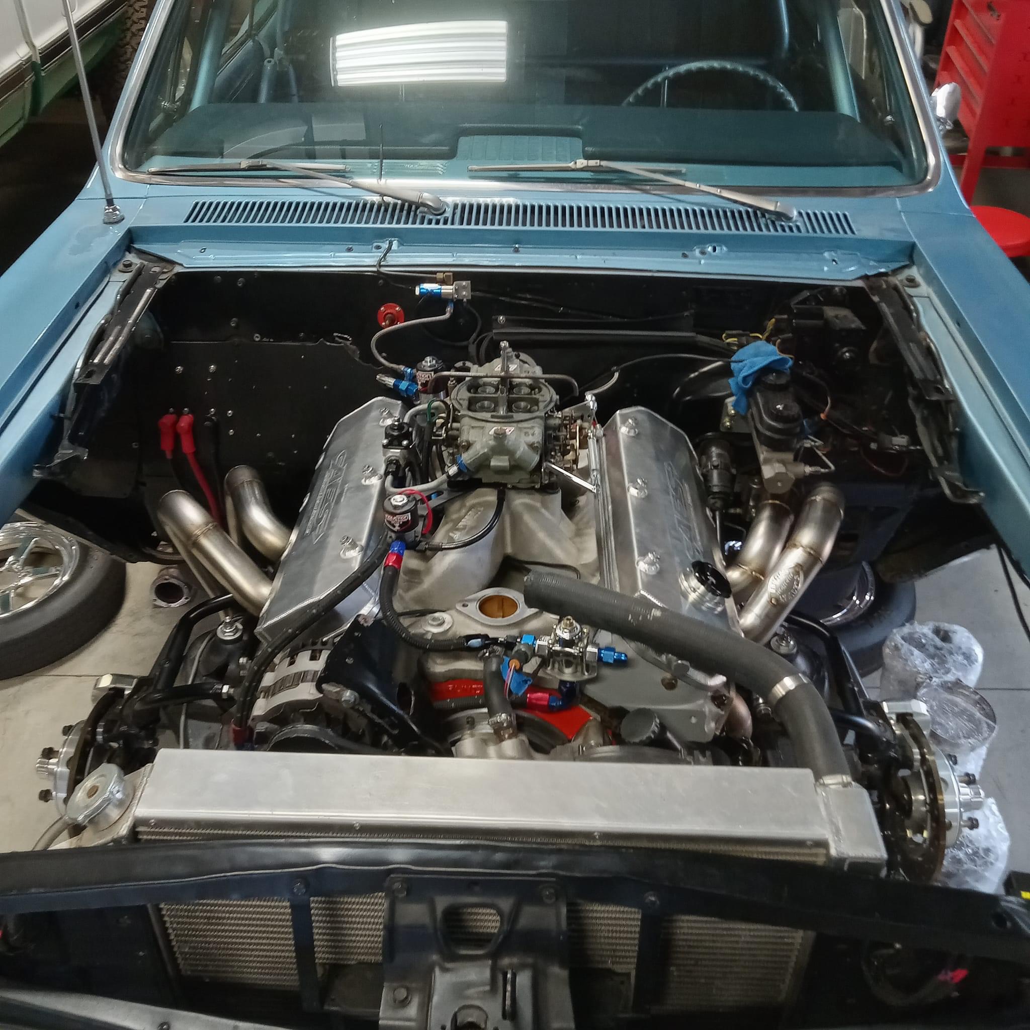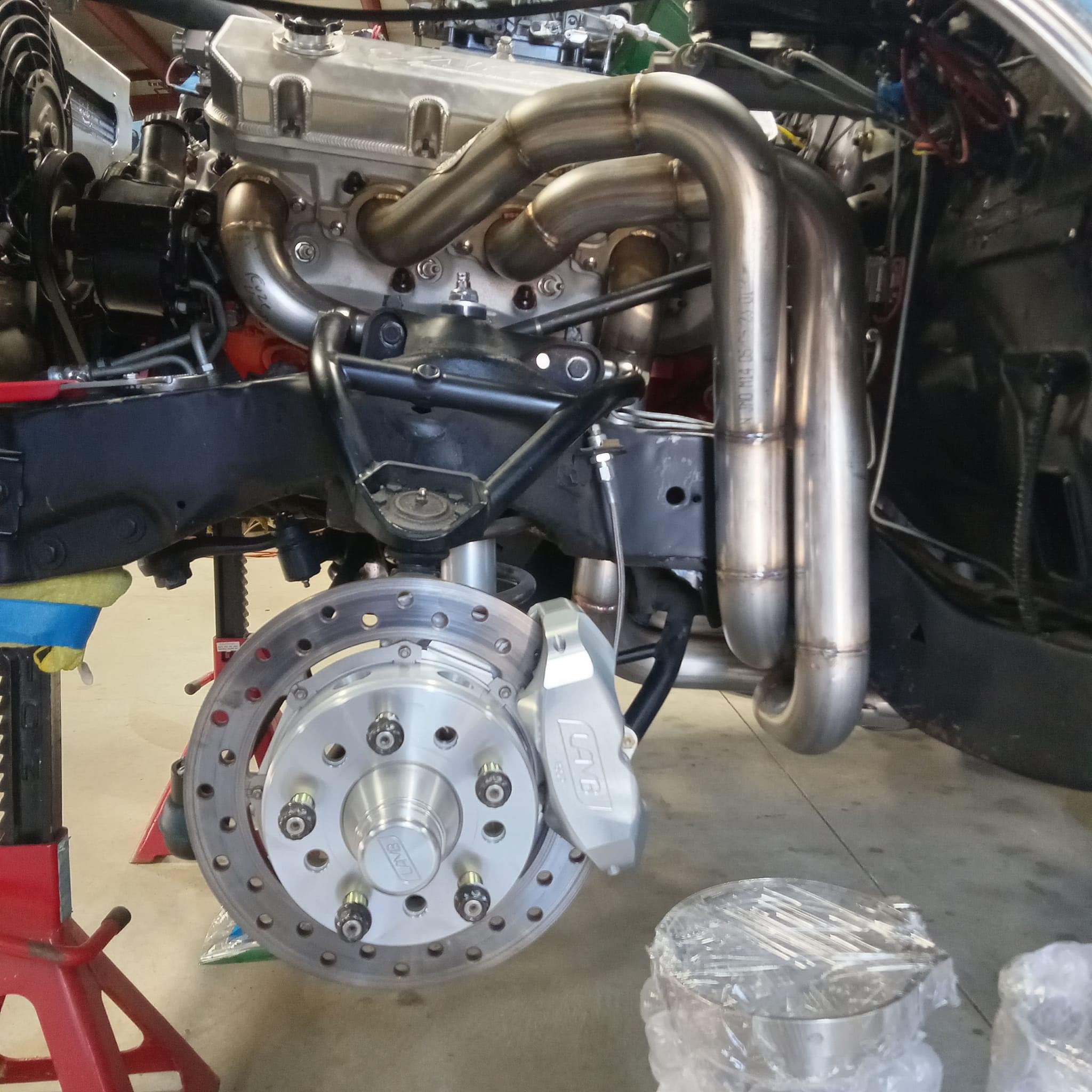 What Fits: We designed this header with the engine in the stock location using small block frame stands for the front motor mounts. The engine mounts can be either Moroso #62530 solid mounts or Prothane #7-505 polyurethane motor mounts.