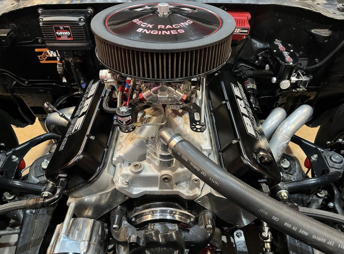 It WILL fit motor plates, aftermarket “A” arms and a power brake booster, but it will NOT fit a factory air conditioning box on the fire wall or *column shifter linkage. Factory clutch linkage will have to be modified to work (ask our sales person for more info.). A deck height and raised exhaust port combination of 1” or more may require moving the steering column outward for clearance. It is intended for use with skinny drag racing type front tires for maximum clearance with the tubes around the frame. Your master cylinder brake lines will have to be rerouted for clearance.