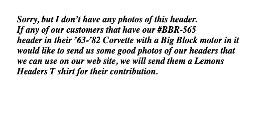 #BBR-565 – ‘63-’82 CORVETTE BIG BLOCK – BB Race header for stock chassis