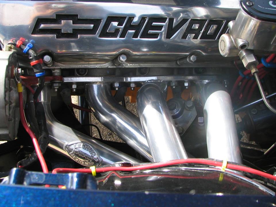 The header in our photos, of a beautiful black “55 owned by Dave Ferrante of Wyoming has his engine set 2 ½” forward from stock and we couldn’t compensate for that distance, but his car sets high so it didn’t matter.