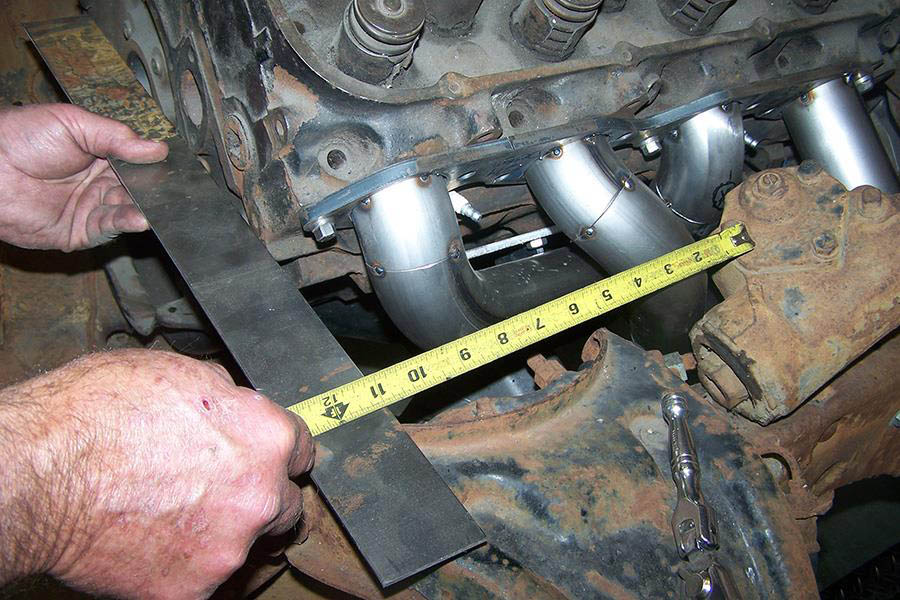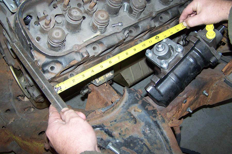 The steering box is difficult to clear. If you have a tall deck block plus raised port heads that exceeds .600” we will not be able to clear it. (See photo) You will have to dent the tube or grind some on the steering box.