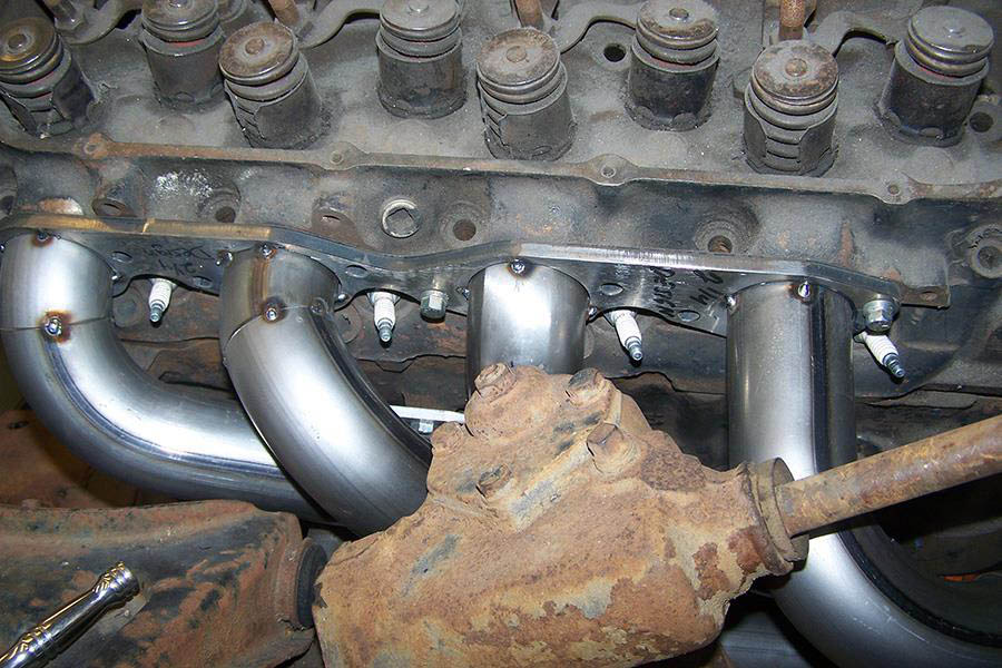 This header requires aftermarket side motor mounts, it does not fit the original bell housing side mounts or column shifter linkage, clutch linkage or a midplate.