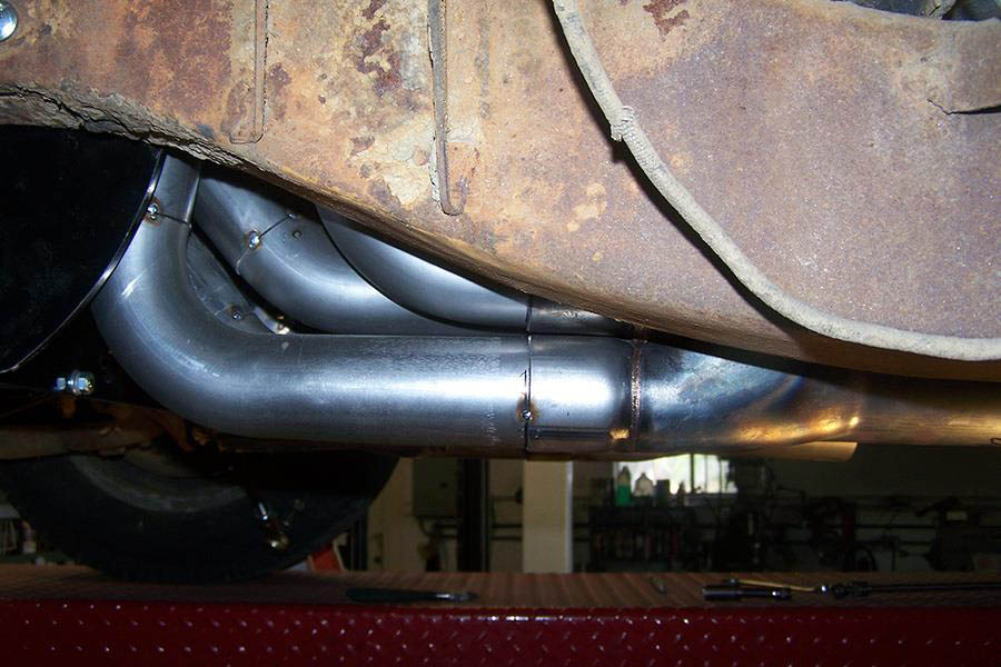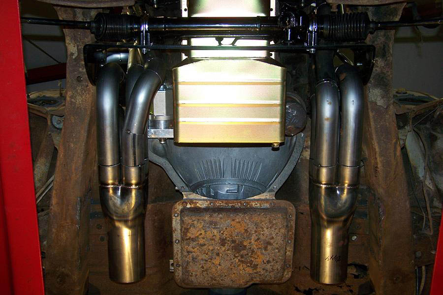 Ground clearance is excellent and spark plug access is very good. If you request evacuation tubes they will be installed on the top of the collectors The driver side e-vac tube may interfere with the emergency brake cable or be very close.