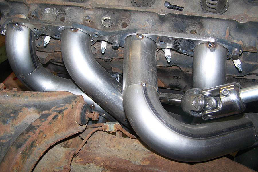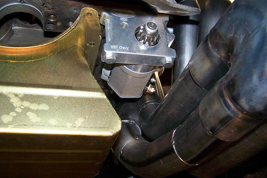 Because the rack mounting bracket is so far back there was not enough room for a be centered in the chassis (see photos and dimensions). The steering column is the big issue here and every thing is close with these big tube headers, so if we ask you to take measurements please be sure they are as accurate as possible.Hitachi style mini starter or full size GM starter. We had to use a Power Master #9540 or #9500 starter, or a CVR #5323 starter also fits, these are Nippondenso style starters and are required for this header.