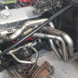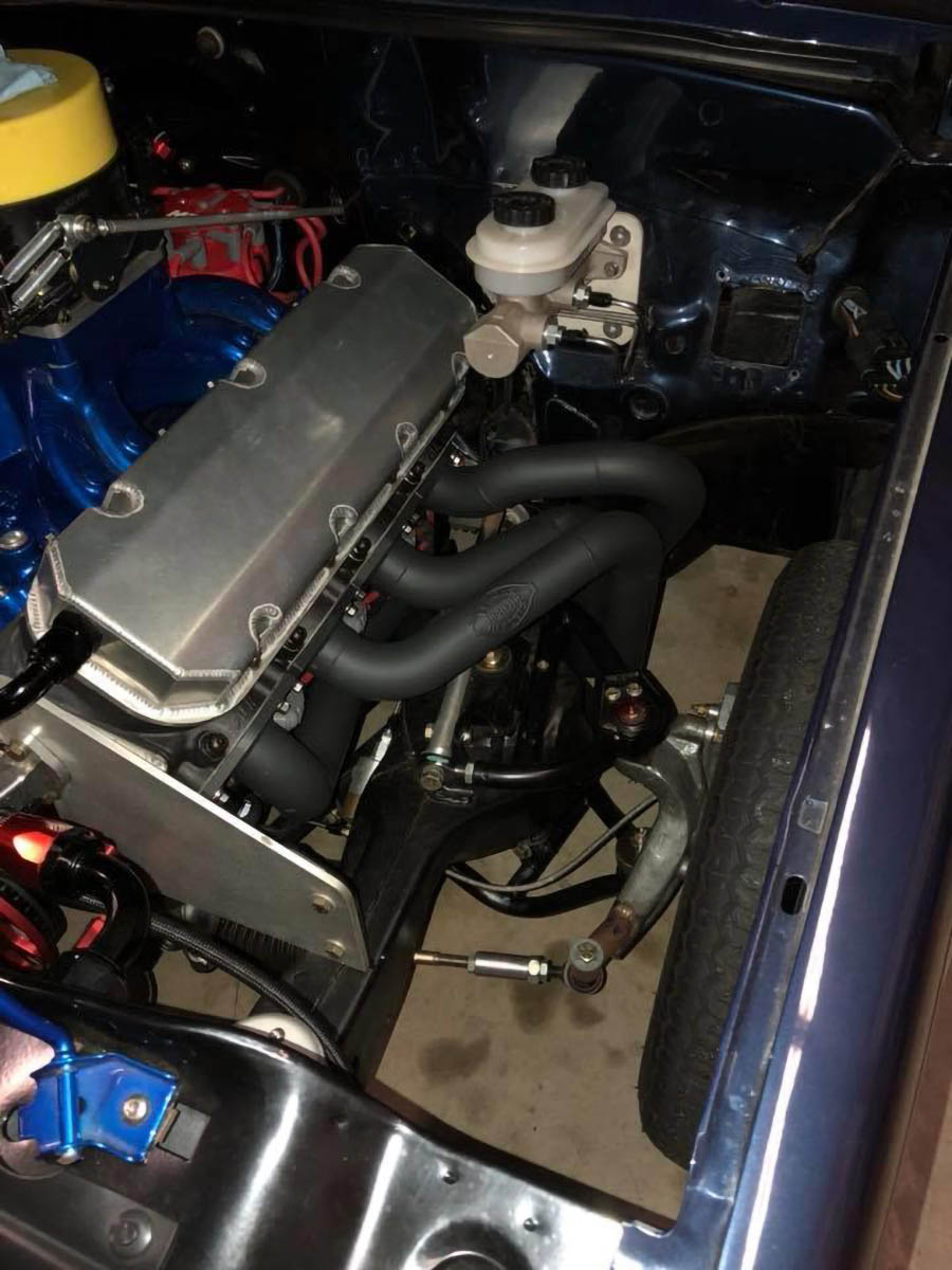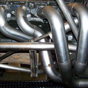 This header was designed using a Tilton starter. Oil pan room is limited on the passenger side to 2 ½” at the bottom of the pan only, on the driver side we have 3 ½” of room top to bottom. Spark plug access is very good you can get a socket on all plugs.
