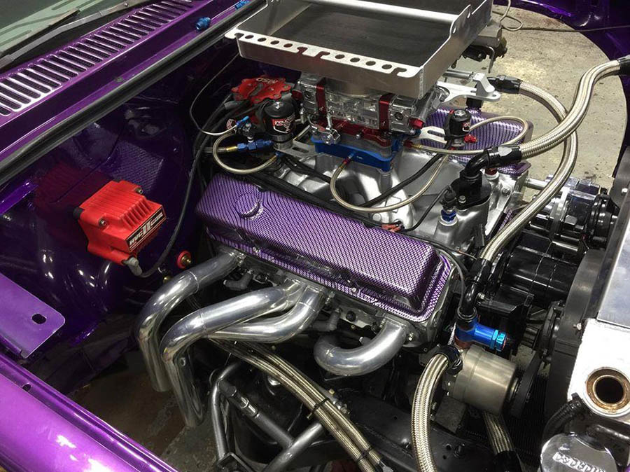 This header was designed using a Tilton starter. Oil pan room is limited on the passenger side to 2” at the bottom of the pan only, on the driver side we have 4” of room top to bottom. Spark plug clearance is good it will fit straight or angled plugs.