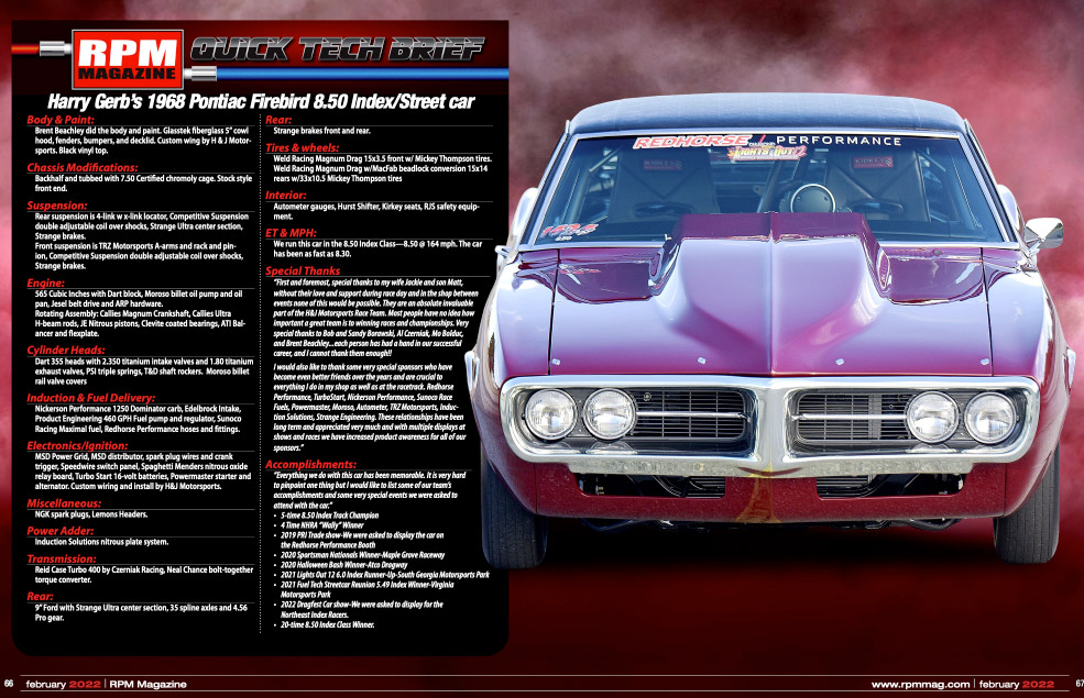 We were Featured in RPM Mag, Harry Gerb's 1968 Firebird