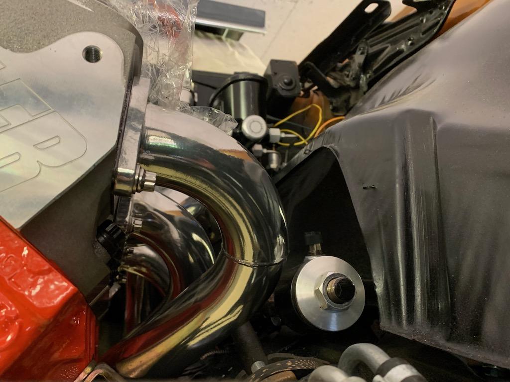 Race Style: If the header is built in the Race style with individual tubes install one tube at a time from the bottom starting from front to back. You may have to raise the engine on the driver side to get #3-#5 pair installed past the steering column. Then install the collectors. In the Race style this header can be fitted with larger collectors or our collector mufflers.